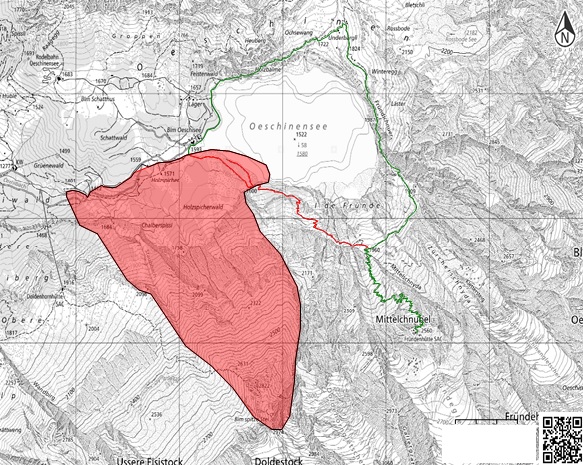 Im November 2019 hat die Gemeinde Kandersteg auf Empfehlung der Abteilung Naturgefahren südlich der Linie Oeschibach – Oeschinensee ein dauerhaftes Sperrgebiet festgelegt. Innerhalb dieses Sperrgebiets können jederzeit Felsstürze und Murgänge auftreten, welche durch die Überwachung nicht vorhergesehen werden und vor welchen vorgängig nicht gewarnt werden kann (Gefahrenkarte).
